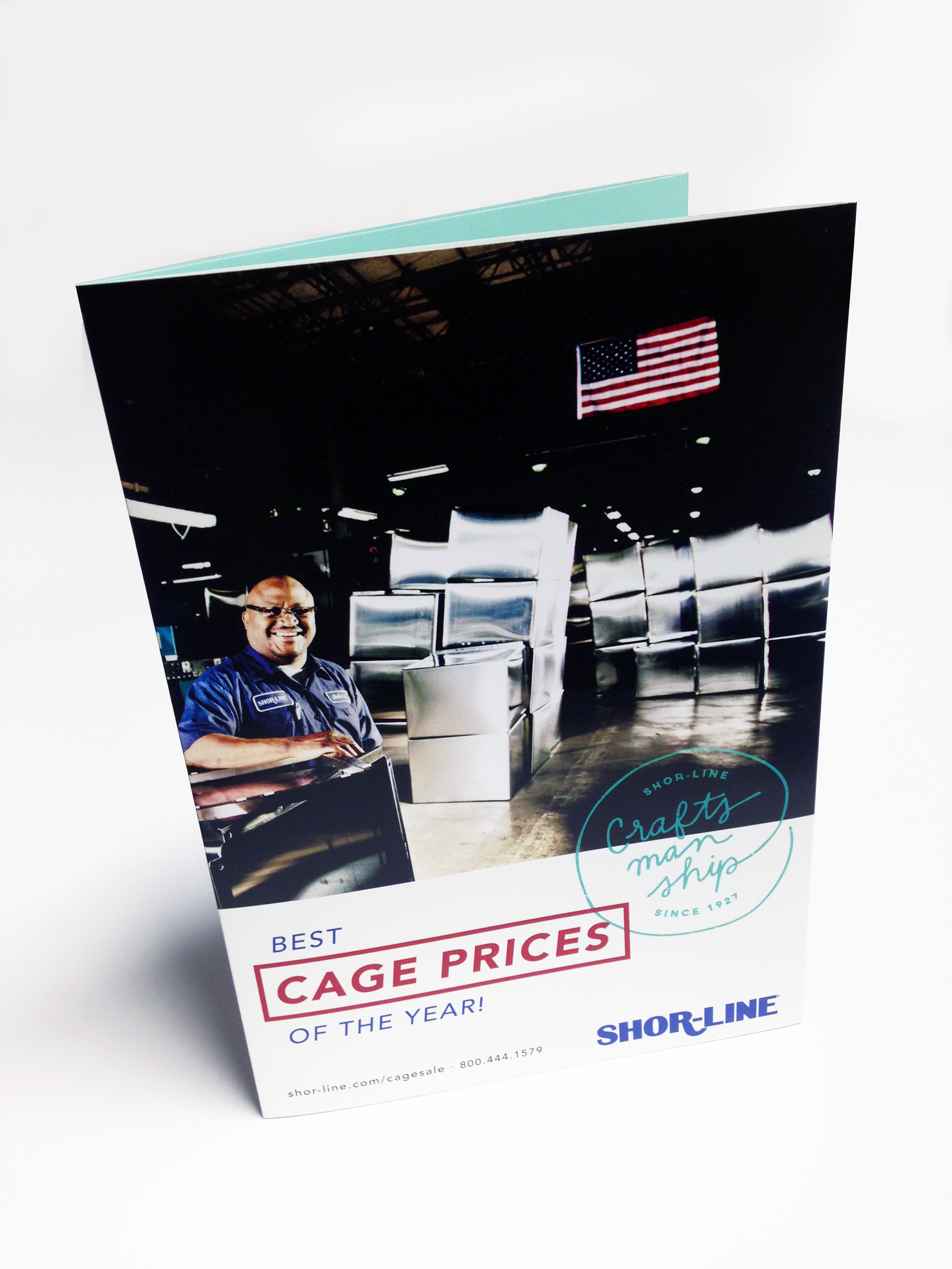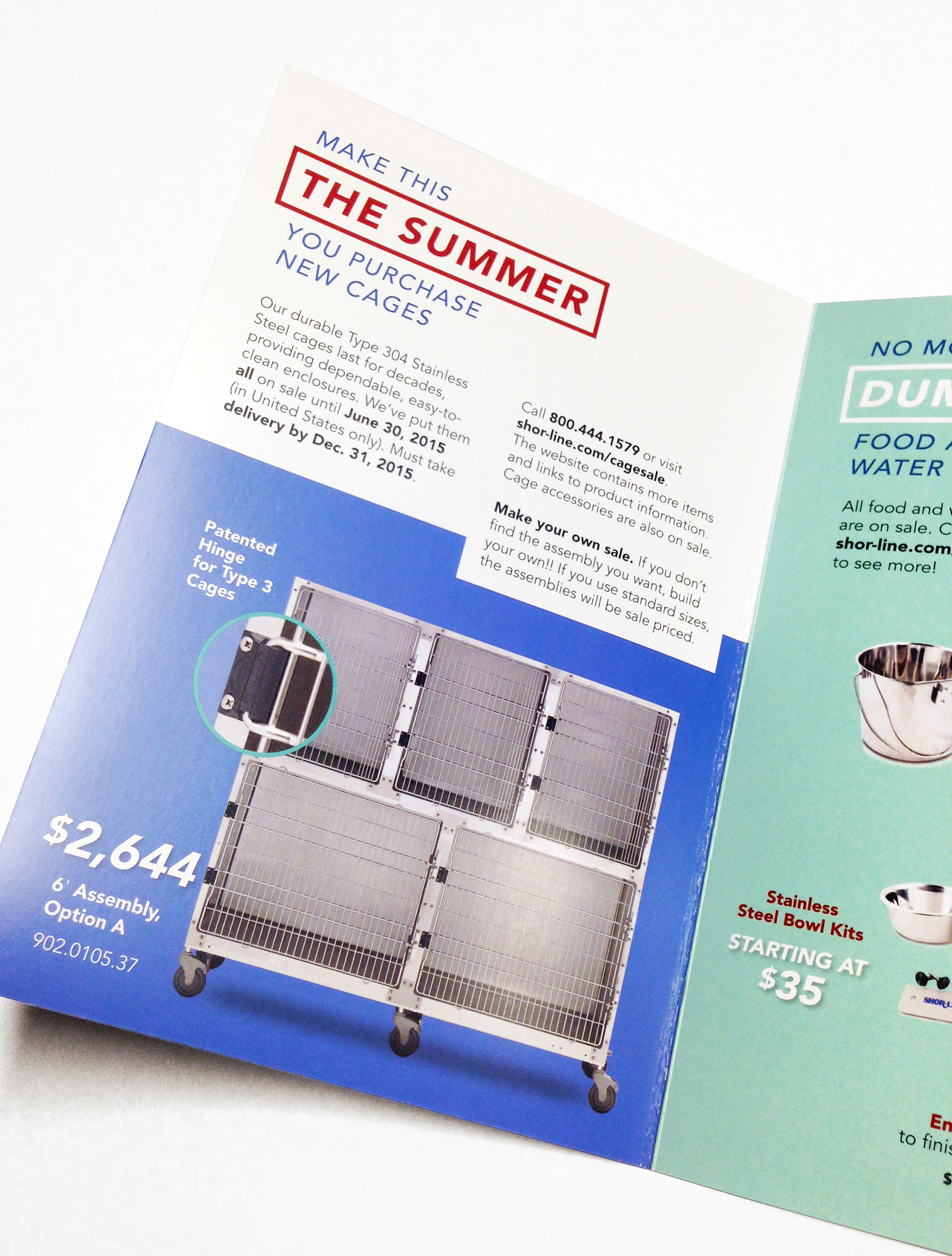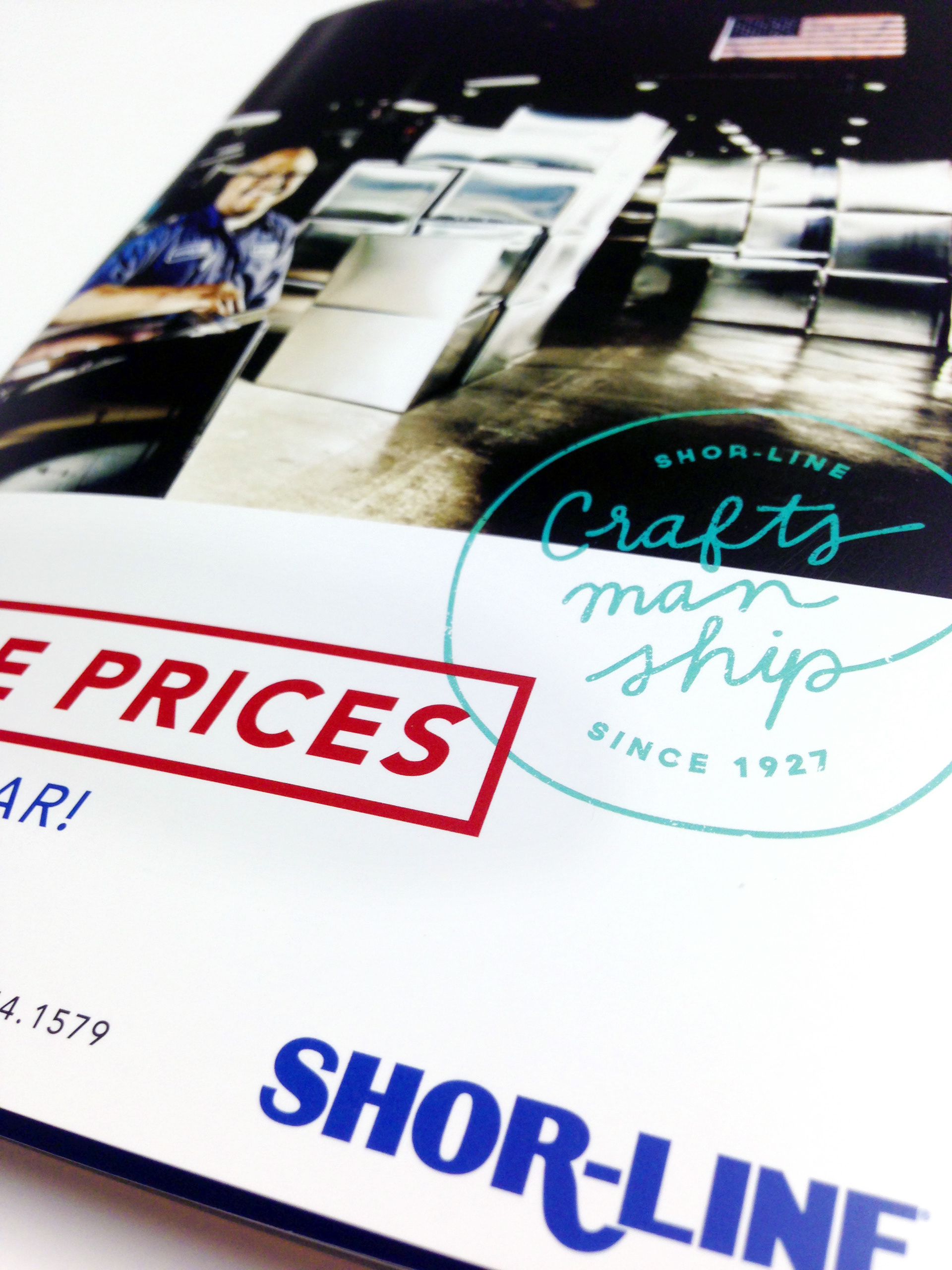 This gate-fold, direct mail brochure highlights the craftsmanship involved in manufacturing Shor-Line's veterinary equipment. The brochure features a hand-drawn 'Craftmanship' stamp and featuring a subtle spot aqueous gloss over any stainless steel images.