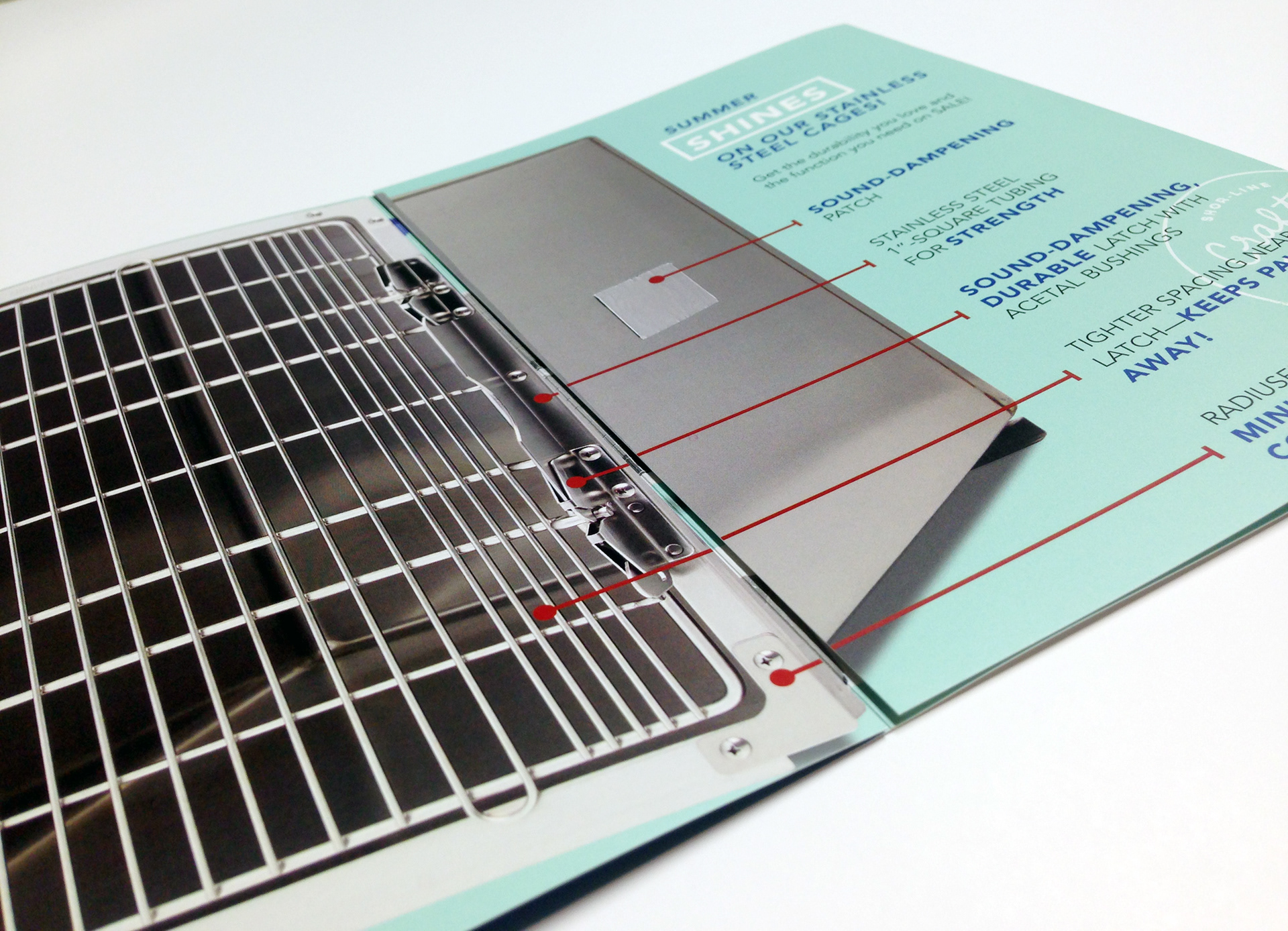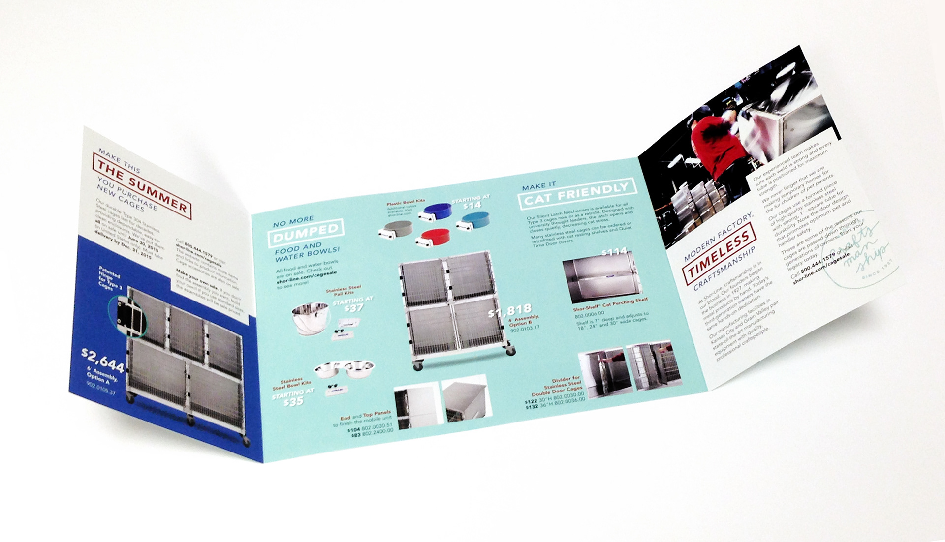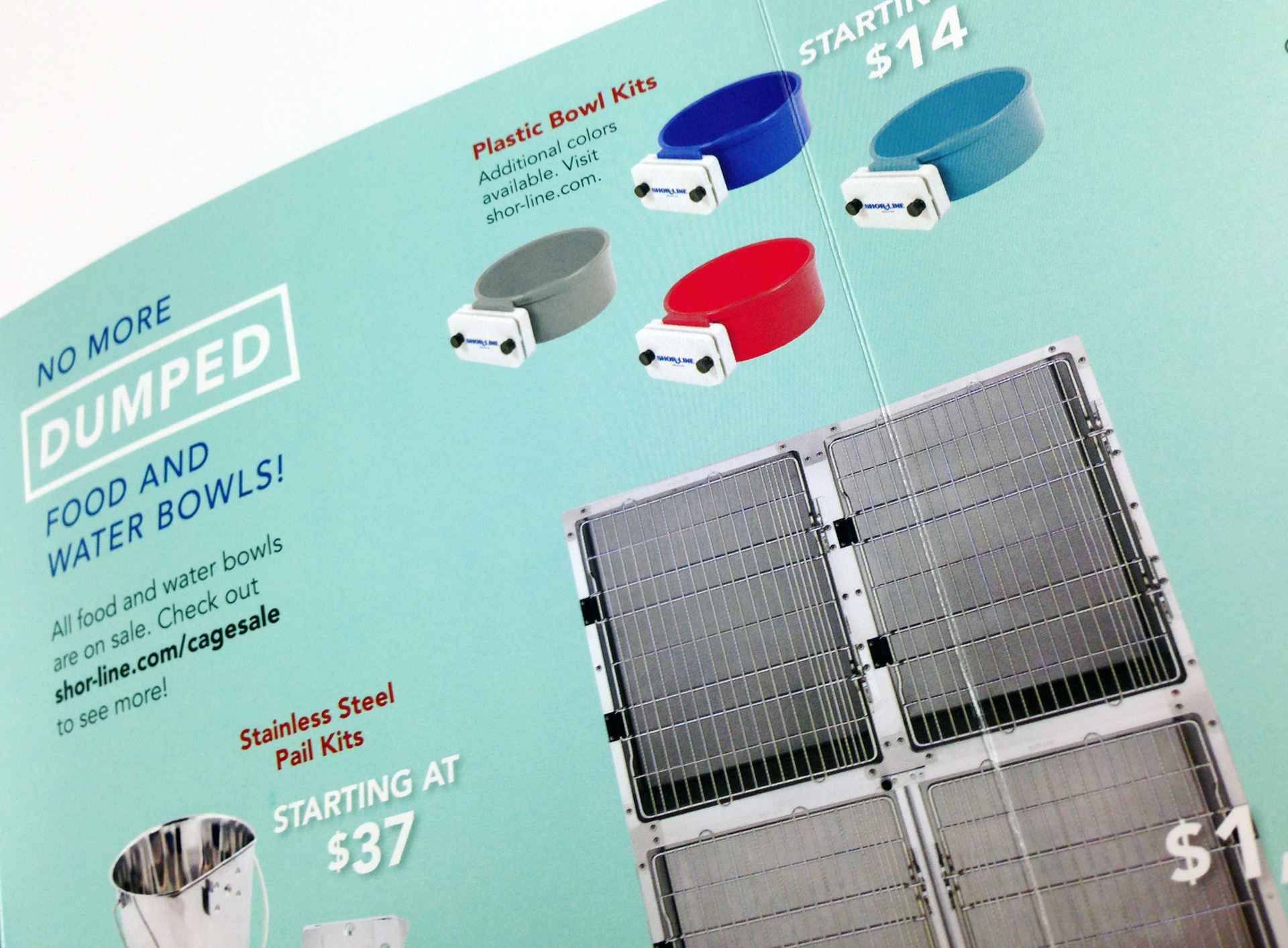 This gate-fold, direct mail brochure highlights the craftsmanship involved in manufacturing Shor-Line's veterinary equipment. The brochure features a hand-drawn 'Craftmanship' stamp and featuring a subtle spot aqueous gloss over any stainless steel images.