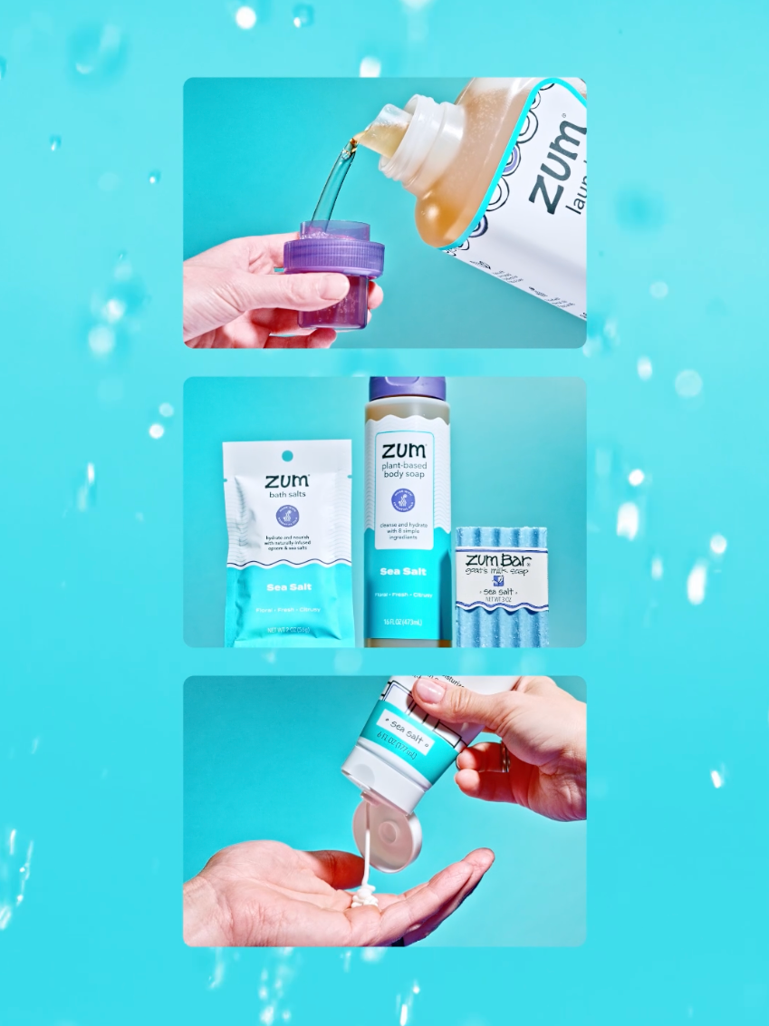 A body soap video ad for Zum by Indigo Wild, originally created for an Instacart campaign but versatile enough to run across social, retail, and marketplace placements. The messaging leads with ingredient transparency — a direct contrast to the cluttered, chemical-heavy formulas common in the category.